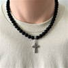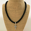 Matte Black Onyx Mens Beaded Necklace with Silver Cross