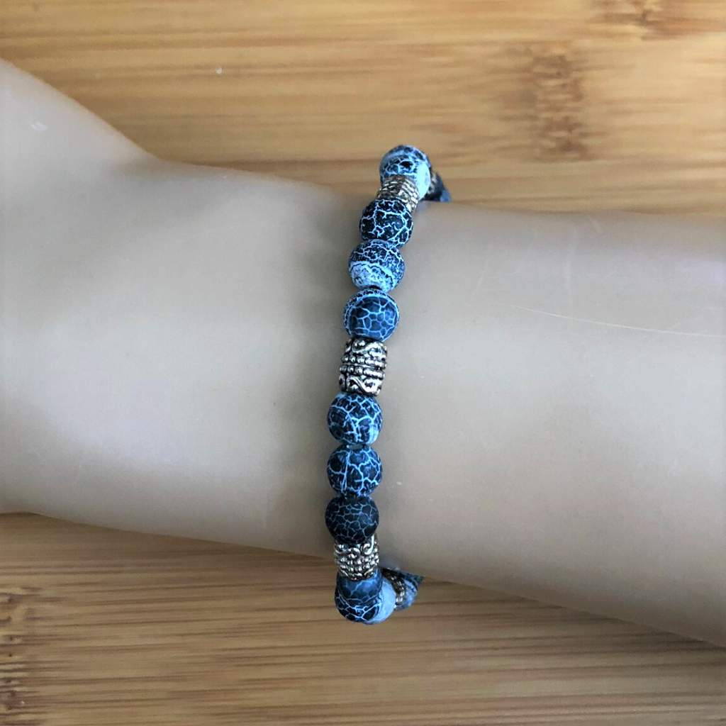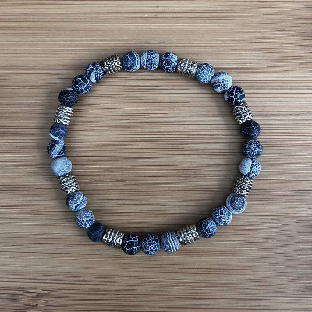 Midnight Blue Fire Agate Matte beads are beautiful dark blue and white crackle look beads.
