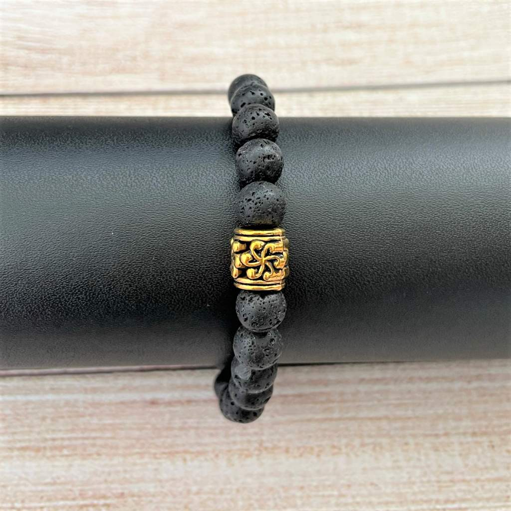 Mens Black Lava Beaded Bracelet with Gold Bead