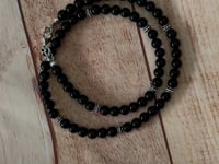 Mens Black Onyx and Silver Beaded Necklace