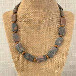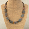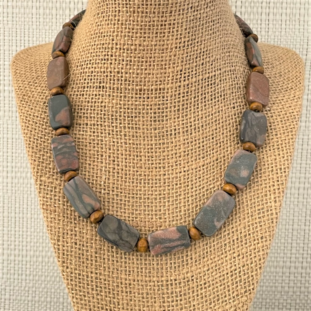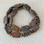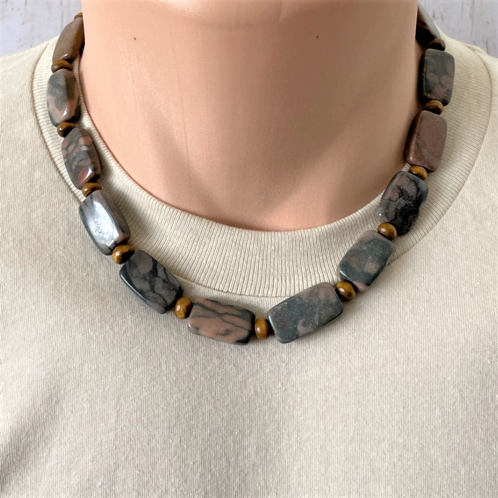 Mens Brown and Black Rectangle Marble Beaded Necklace