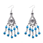Royal Blue and Silver Beaded Flower Dangle Earrings