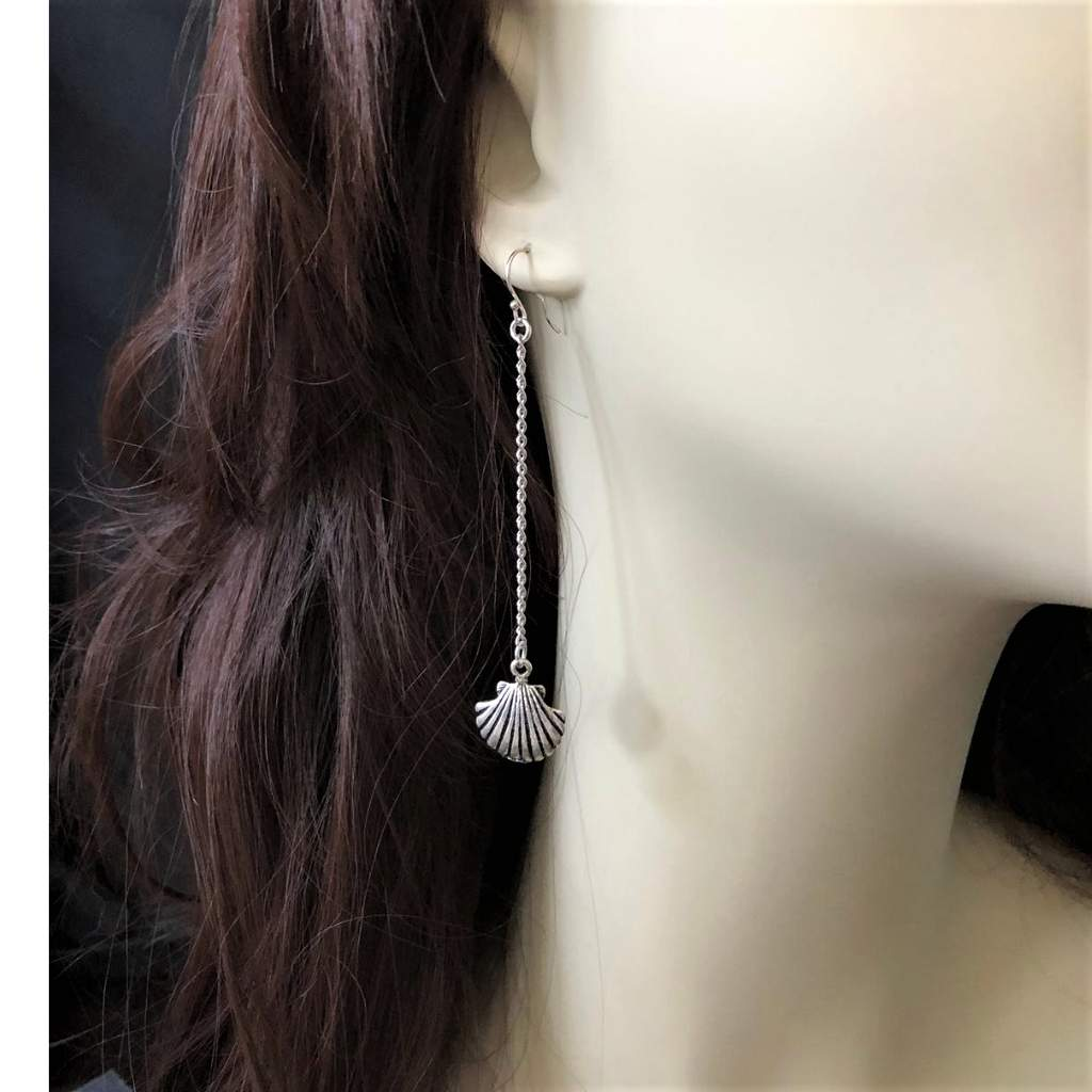 These earrings feature a delicate long chain ending with a charming seashell. Measuring 3 inches in length, they hang gracefully from sterling silver earwires for a fun, breezy look.