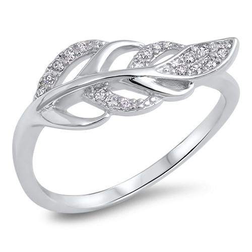 This elegant sterling silver ring features a delicate leaf design adorned with sparkling CZ stones. The curled tip of the leaf adds a unique depth, making this ring a stunning addition to any jewelry collection.