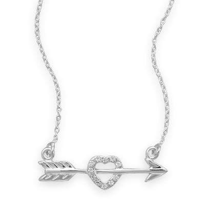 Sterling Silver Arrow and CZ Heart Necklace