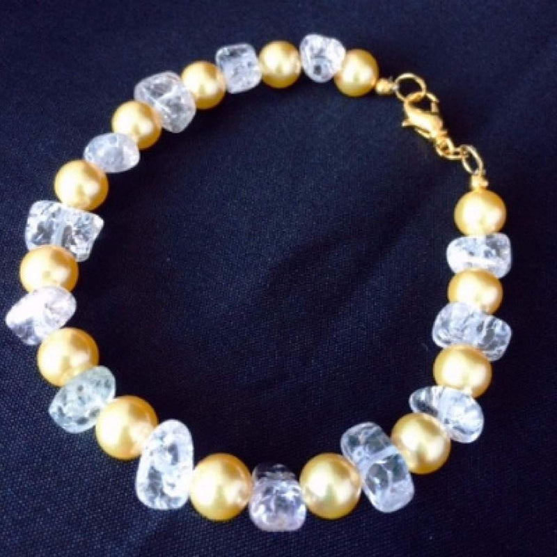 Gold Swarovski Pearl and Clear Quartz Bracelet